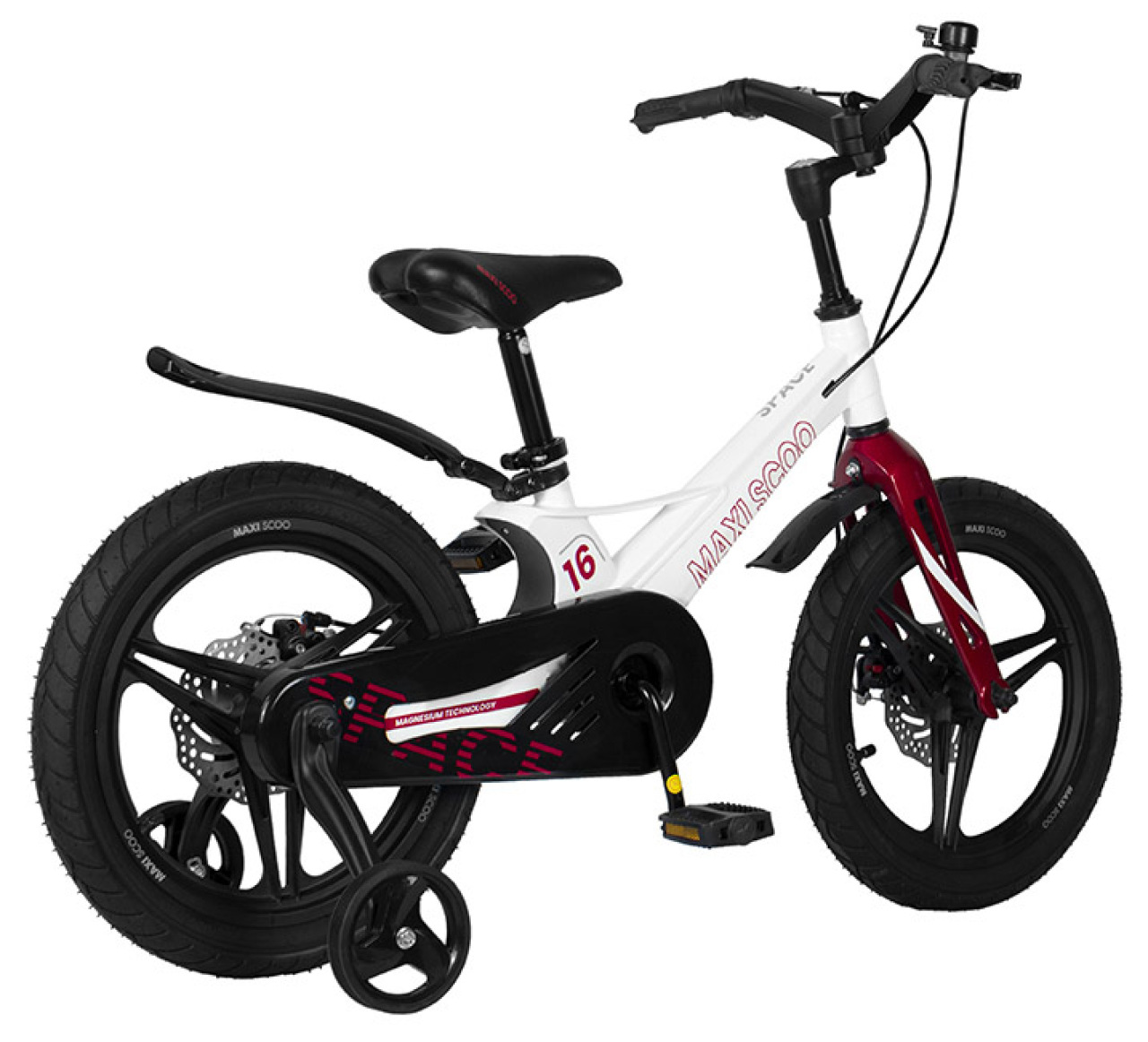 Maxiscoo Space Deluxe 16 (2022) – отличная модель для прогулок и активного отдыха на свежем воздухе. Седло выполнено из качественных материалов. Практичная жёсткая вилка проста в обслуживании. Рама из магниевого сплава – воплощение инновационных наработок от команды инженеров бренда. При этом дисковые механические тормоза не подведут вашего малыша даже на скользкой дороге, гарантируя точный и своевременный отклик на команду. Эргономичная и прочная система обеспечит эффективное кручение педалей.