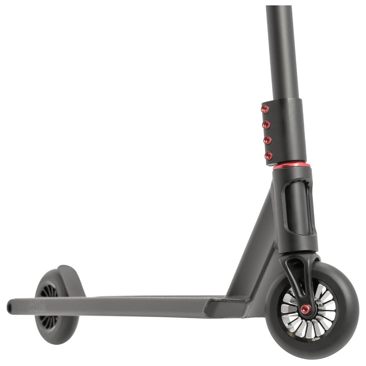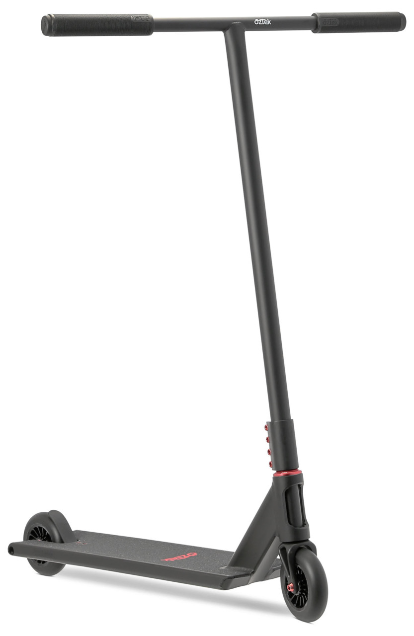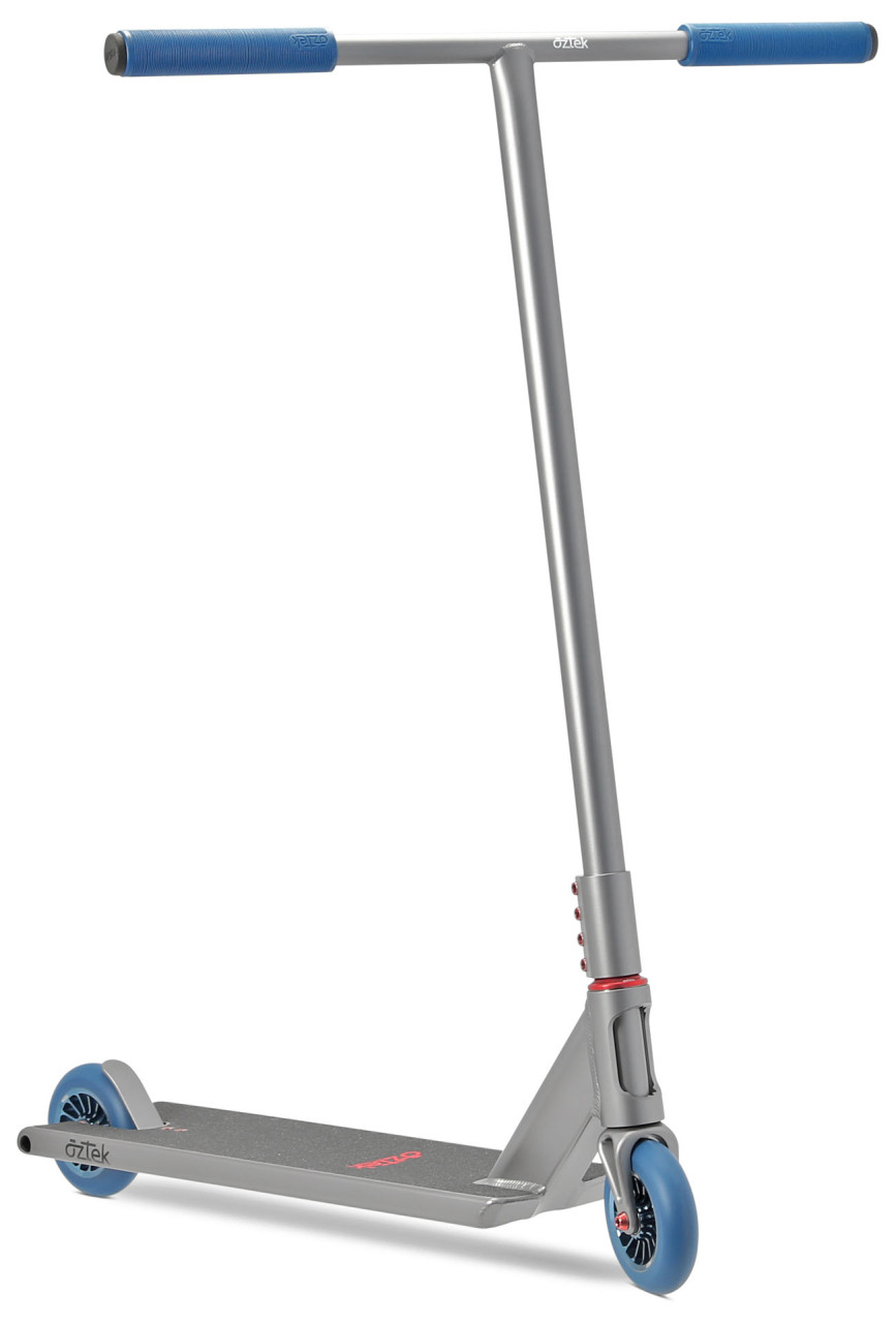 Руль выполнен из стали, сплава Cr-Mo 4130, и имеет стандартный диаметр 31,8 мм. На данном самокате установлена алюминиевая вилка, поддерживающая диаметр колес 115 x 30 мм, что позволит обучаться трюкам с балансами на переднем и заднем колесах с большим комфортом. Все детали соединяет между собой компрессия Aztek Ember стандарта SCS. Самокат комплектуется стальным настраиваемым тормозом.