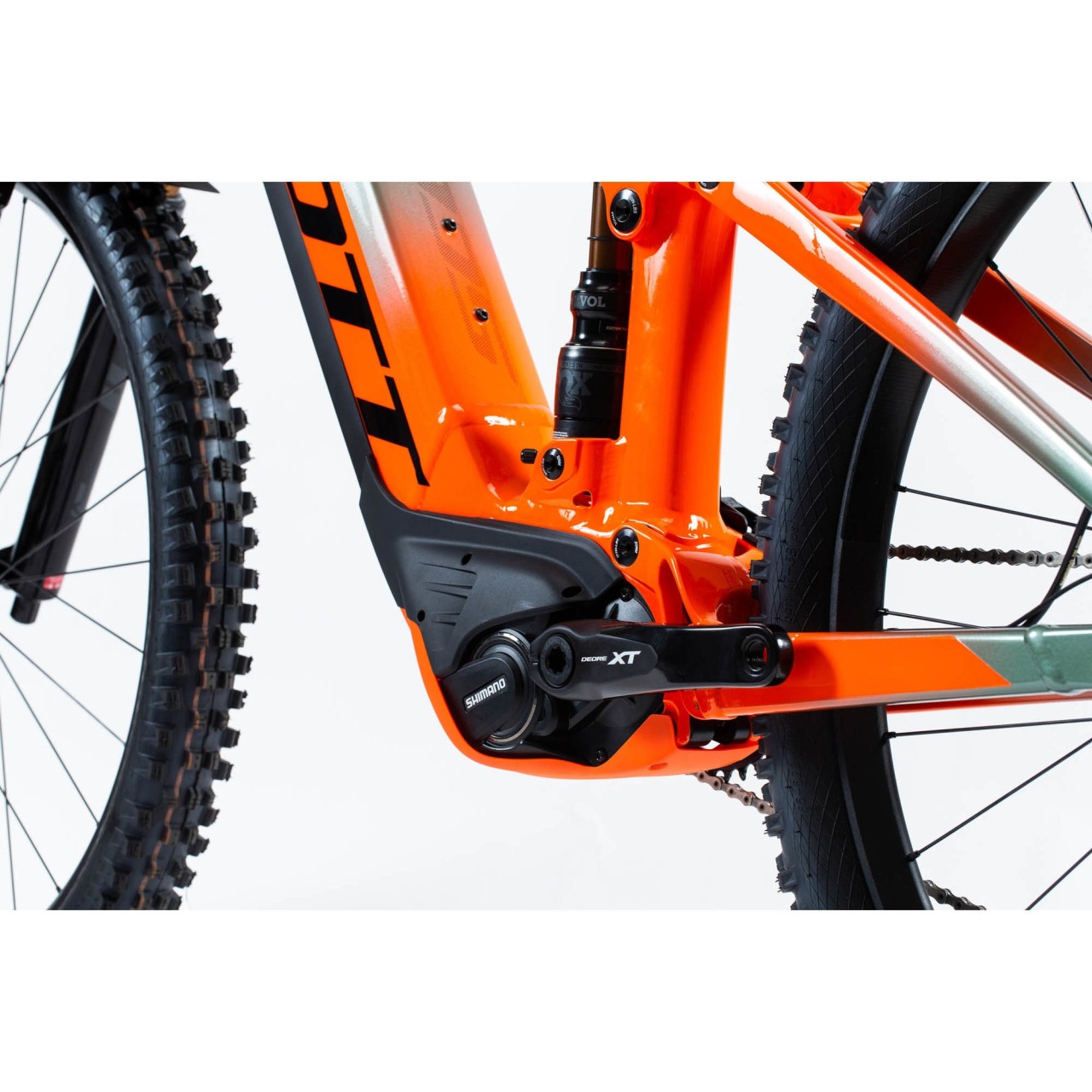 Alloy Frame / Virtual 4 link kinematic VLK, 27.5" and 29" compatible / geo adj. / Boost 148x12mm, 150mm travel / Shimano E-8000 Integr. DT Battery, Tapered Headtube E2, Central Kickstand Mount