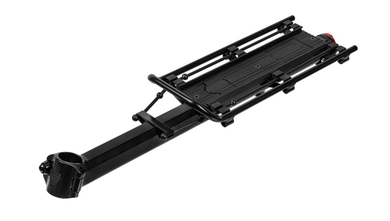 Универсальный консольный багажник Topeak MTX BeamRack II (E type) от американского производителя, является одним из самых популярных во всем мире. Багажник выполнен из качественного, прочного алюминия серии 6061 Т6. Крепление багажника осуществляется на подседельный штырь, что позволяет Вам установить его на любой велосипед. Багажник рассчитан на максимальную нагрузку в 9 кг, а его фирменное крепление QuickTrack позволит надёжно закрепить Ваш багаж, сумки и корзины MTX 1.0 и 2.0. В задней части багажника имеется дополнительное крепление для установки светоотражающего элемента или фонаря. Важно: данная модель багажника предусматривает установку на велосипеды из карбона, но с алюминиевым или стальным подседельным штырём.
